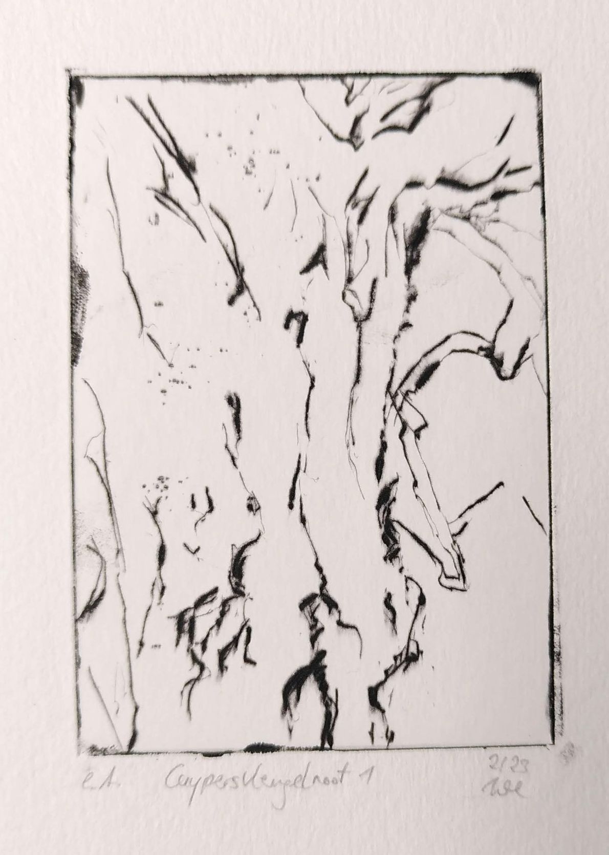 Buttonvernis mou-etching, 2021